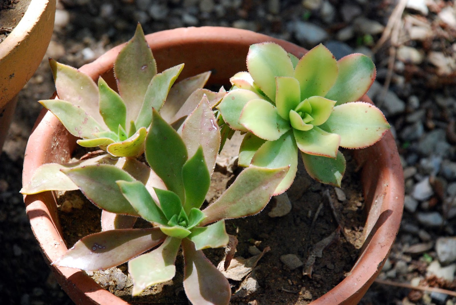 | Mix de bouture d'Aeonium dont l'Aonium Kiwi (cadeau que je garde avec soin) |