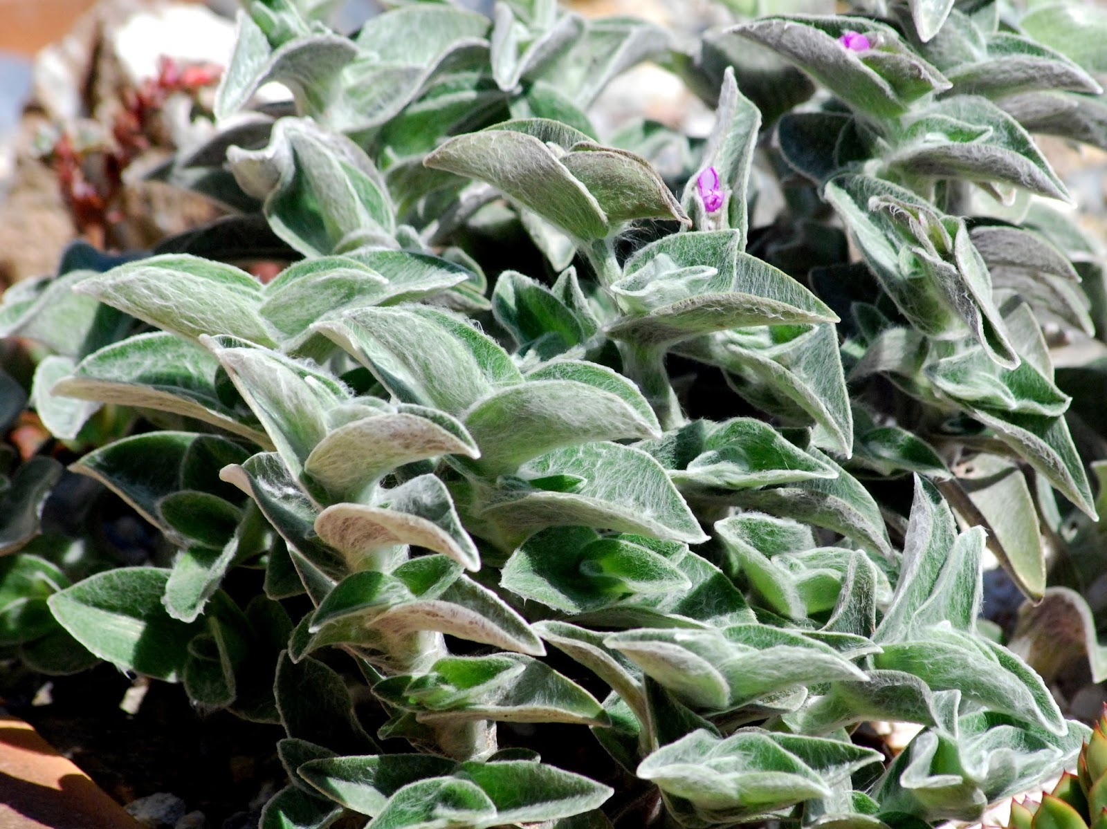 | La très fidèle Tradescentia sillamontana qui sèche entièrement à l'automne, protège ainsi sa souche et repart de plus belle au printemps! |