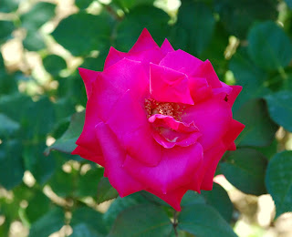 En l'an 2000, quand je suis arrivée, ils étaient délaissés depuis bien des années et en très mauvais état, j'ai réussi tant bien que mal à leur redonner 17 ans de vie mais depuis l'année dernière, certains s'essoufflent progressivement ou pire s'éteignent brutalement comme 'Camara' , un rosier très rouge, difficile à photographier de manière contractuelle, (il est censé être vermillon) peu parfumé, peu florifère mais qui savait accrocher la lumière comme personne. Je n'ai rien remarqué lors de la taille de fin d'hiver, simplement il n'est pas reparti... et va donc être arraché. Il est trop tard en saison et si je le remplace, ce sera l'automne prochain et je ne suis pas sûre d'avoir envie de réintroduire ce type de rosier qui de loin n'est pas mon préféré.